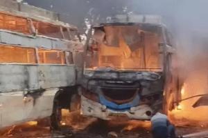 देवघर: शिवपुरी मोहल्ले में खड़ी चार बसों में भीषण आग, करोड़ों का नुकसान